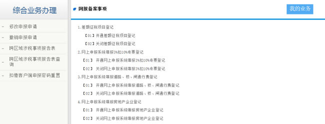 如需填写金融商品转让扣除额,应先办理差额征税项目登记,在电子税务局主页中,依次点击【我要办税】-【税费申报缴纳】-【申报辅助信息报告】-【网报备案事项】-【开通差额征税项目登记】,填写完毕提交申请,待审核通过,重置申报表后即可填写。