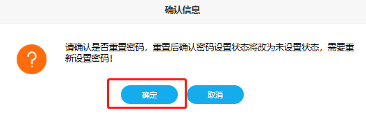 4) 系统提示“请确认是否重置密码,重置后确认密码设置状态将改为未设置状态,需要重新设置密码”,点击【确定】;