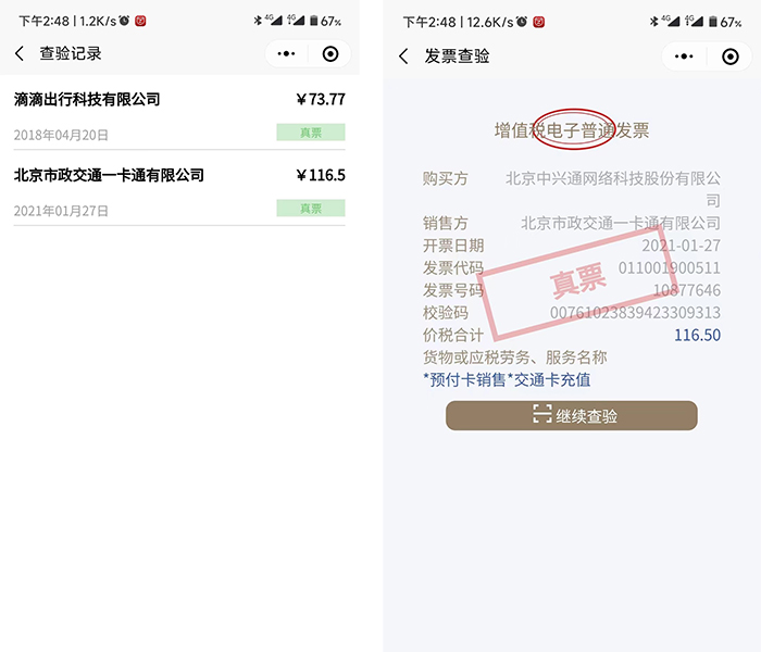 提供“手工录入”和“一键扫码”两种方式快速查验发票,摆脱时间地点限制,随时随地查验发票真伪。